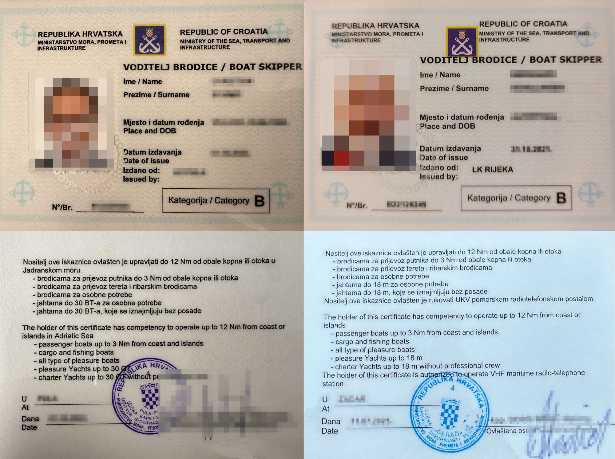 Obwohl die UKW-Seesprechfunkberechtigung (VHF) schon immer Teil des Küstenpatents B war, fehlte der explizite Hinweis auf den älteren Dokumenten. Jetzt ist er wieder klar vermerkt – ein Vorteil vor allem bei Fahrten außerhalb Kroatiens oder beim Yachtcharter.
