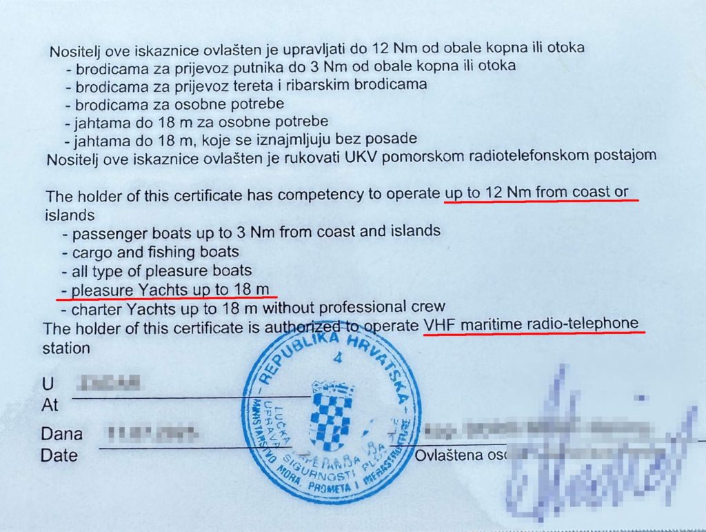 In diesem Artikel LINK erinnern wir, dass bereits 2020 eine Änderung der Vorschriften eingeführt wurde, die die Gültigkeit dieser Lizenz auf Yachten bis 18 m Länge beschränkt. Obwohl dies bereits früher vorgeschrieben war, werden erst seit diesem Jahr, genauer gesagt seit Sommer 2025, neue Lizenzen mit aktualisiertem Text ausgestellt, bei denen die Volumenangabe 30 BRT durch Längenangabe 18 m ersetzt wurden.
